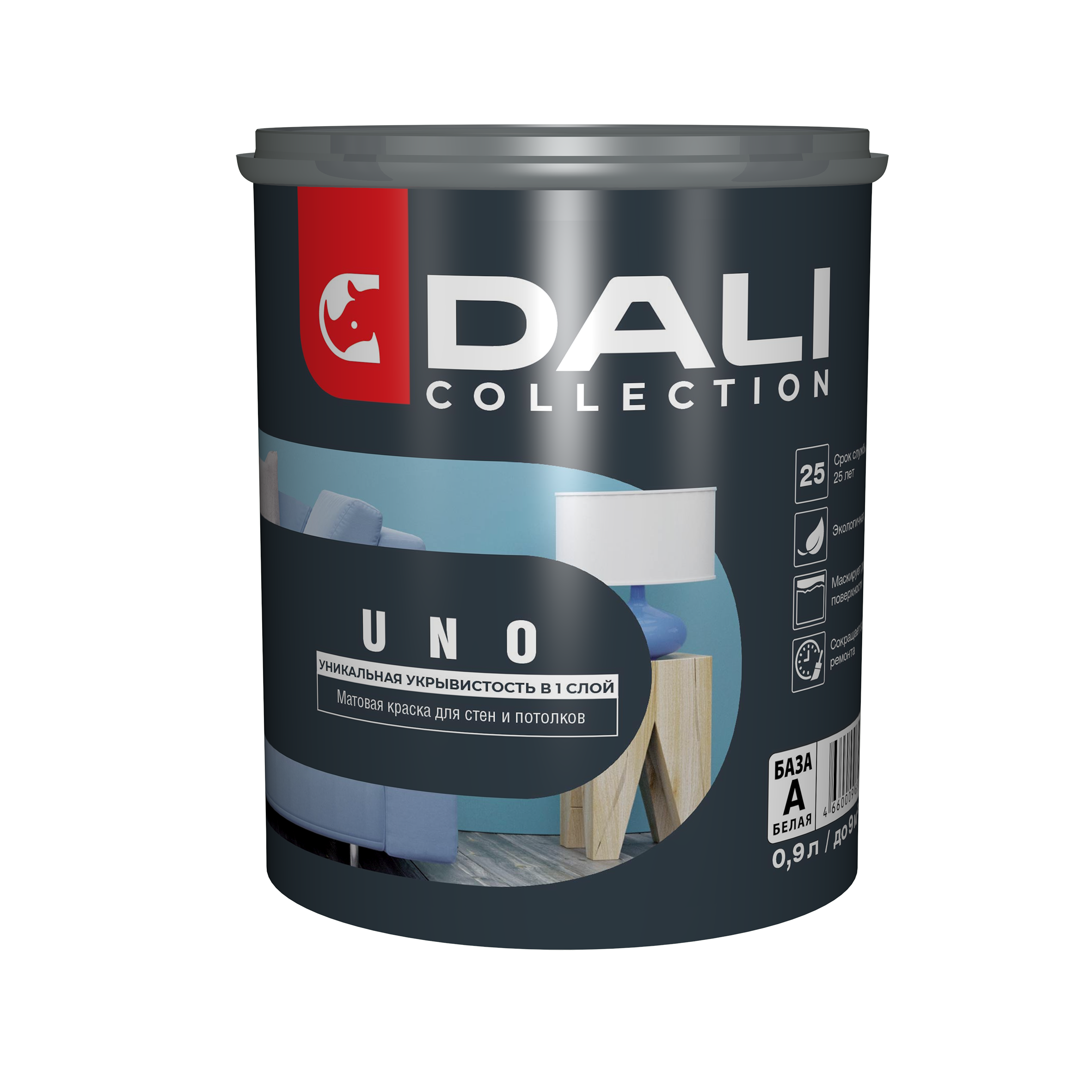 Краска ВД для стен и потолков 0,9л База А Dali Collection UNO применяется для окраски стен и потолков в помещениях с умеренной эксплуатационной нагрузкой и нормальным уровнем влажности.