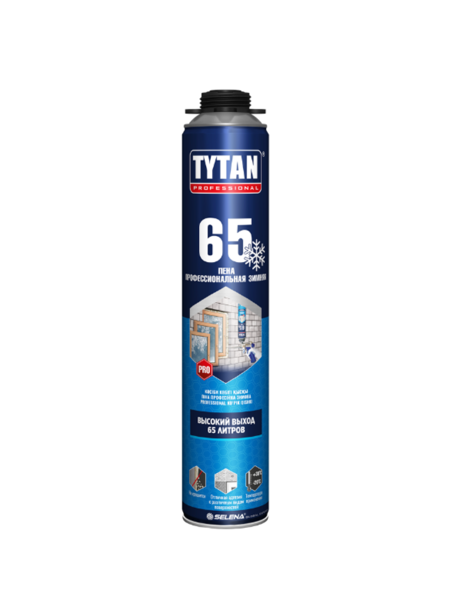 Пена профессиональная зимняяTytan Professional 65 750мл применяется для профессионального монтажа окон и дверей, термо- и звукоизоляции и заполнения щелей и герметизации швов.