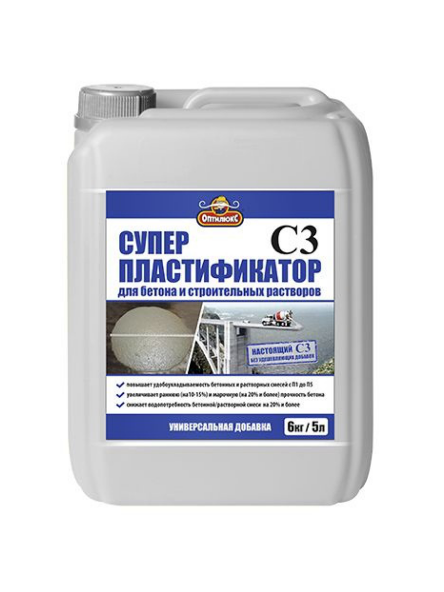 СУПЕРПЛАСТИФИКАТОР ОПТИЛЮКС для бетонов и строительных растворов 5л канистра П/Э
