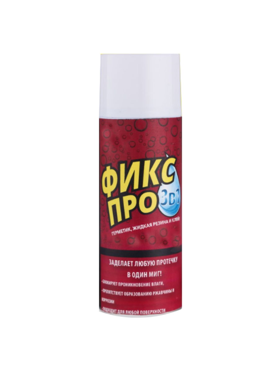 Жидкая резина ''Фикс Про 3 в 1'' белого цвета – это инструмент для ремонта и строительства, водоотталкивающий спрей, который заделает любую трещину, шов или протечку за один миг. Жидкая резина - это инновационный материал, который сочетает в себе свойства герметика, резины и клея. Распылитель герметизирует любые трещины, образуя водонепроницаемое уплотнение. Водостойкий аэрозоль полностью блокирует проникновение влаги, образование ржавчины и коррозии. Фикс Про работает практически на любых поверхностях, таких как пластик, металл, дерево, плитка, камень, керамика, кирпич, бетон, стекло, резина. Он огнеупорный, не боится ни высоких, ни низких температур. Порвался шланг, прохудилась бочка, ведро, треснул стул, протекает крыша, лопнула труба или даже резиновые сапоги - все починит.