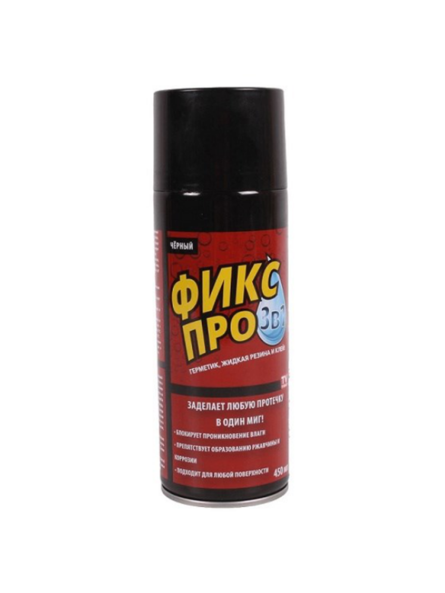 Жидкая резина ''Фикс Про 3 в 1'' черного цвета – это инструмент для ремонта и строительства, водоотталкивающий спрей, который заделает любую трещину, шов или протечку за один миг. Жидкая резина - это инновационный материал, который сочетает в себе свойства герметика, резины и клея. Распылитель герметизирует любые трещины, образуя водонепроницаемое уплотнение. Водостойкий аэрозоль полностью блокирует проникновение влаги, образование ржавчины и коррозии. Фикс Про работает практически на любых поверхностях, таких как пластик, металл, дерево, плитка, камень, керамика, кирпич, бетон, стекло, резина. Он огнеупорный, не боится ни высоких, ни низких температур. Порвался шланг, прохудилась бочка, ведро, треснул стул, протекает крыша, лопнула труба или даже резиновые сапоги - все починит.