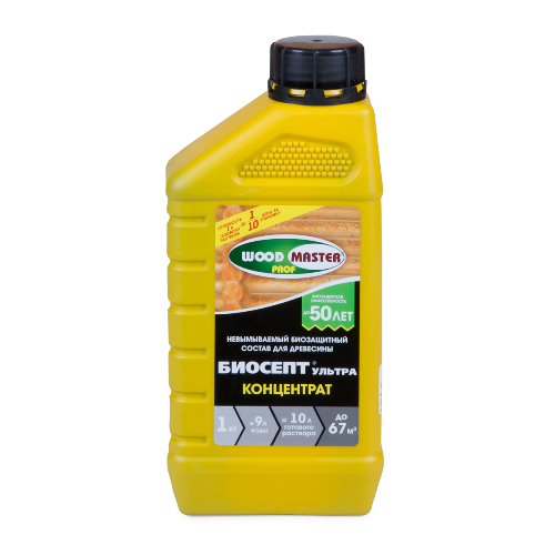 Биосепт®Ультра Концентрат WOODMASTER PROF невымываемый биозащитный состав для древесины, применяется внутри и снаружи помещений: