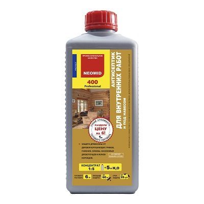 NEOMID 400 – деревозащитный антисептик нового поколения на водной основе. Защищает древесину от действия дереворазрушающих и деревоокрашивающих плесневых грибов, насекомых-древоточцев и короедов на срок до 25 лет. Антисептик для внутренних работ NEOMID 400 применяется для обработки строганных и пиленых деревянных поверхностей внутри помещений.