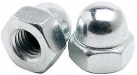 Гайка DIN 1587 колпачковая применяется для закрытых резьбовых соединений. Колпачковую гайку в большинстве случаев используют в декоративных целях. Гайкой закрывают торчащие окончания креплений и соединений. Она прекрасно может скрыть нелицеприятные части создаваемого крепежа. Помимо всего прочего гайка защищает соединение от попадания влаги.В качестве основного материала при производстве используют нержавеющую сталь. Поверхность оцинковывают. Это улучшает качество крепления и делает его долговечным. Монтаж выполняют при помощи гаечного ключа либо гайковерта. С колпачковой гайкой шайбы не применяют, чтобы не испортить внешний вид создаваемого крепления.Колпачковая гайка используется и в приборостроении, и в автомобилестроении.