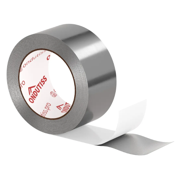 Лента фольгированная односторонняя ONDUTISS Termo Tape самоклеящаяся для герметизации нахлёстов любых отражающих плёнок. Обладает высокой влагостойкостью и имеет температуру эксплуатации до +150°С, что идеально для бань и саун.