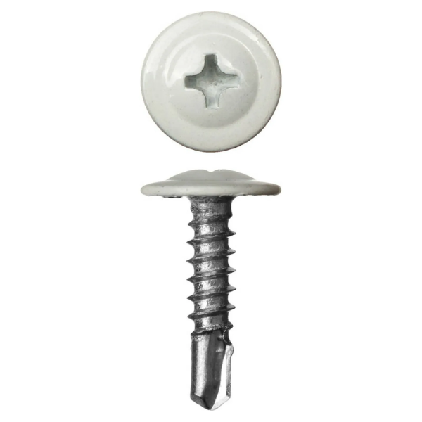Саморез с прессшайбой сверлоконечный изготовлен из оцинкованной стали и окрашен по каталогу RAL 9003 Белый. Имеет резьбу с мелким шагом и наконечник в виде сверла, со способностью просверливания металла до 2 мм, без предварительного сверления отверстия. Головка самореза имеет крестовидное отверстие, под головкой расположена специальная шайба, которая служит для более плотной фиксации скрепляемых материалов. Применяется для монтажных работ, соединения элементов листового металла, тонколистовой стали.