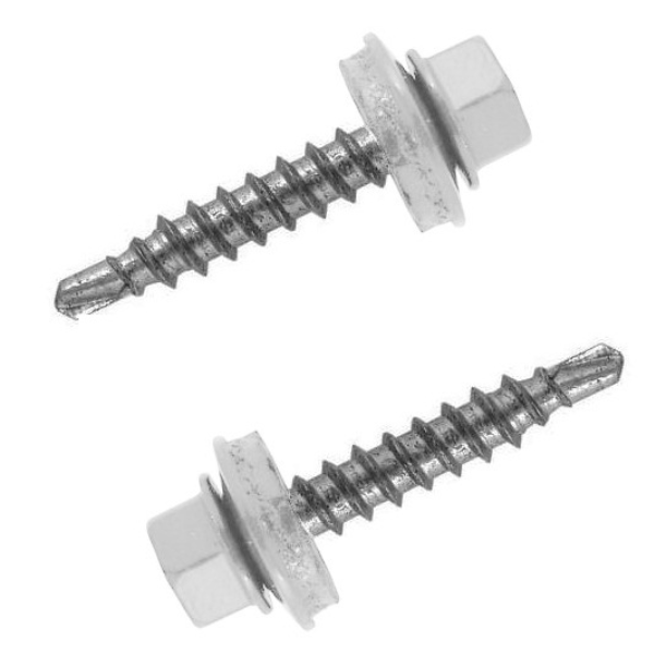 Саморез кровельный изготовлен из стали, покрыт белым цинком с дополнительной окраской в цвет RAL 9003 Белый. Применяется для крепления кровельных материалов, металлочерепицы или мягкой кровли и прочих к деревянному основанию. Кровельный саморез с редким шагом резьбы и уменьшенным сверлом, диаметра 4.8 для крепления кровли к дереву. Головка у саморезов под шестигранную биту, так же имеется шайба плоская с резиновой прокладкой EPDM для повышения герметизации.