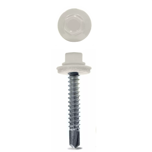Саморез кровельный изготовлен из стали, покрыт белым цинком с дополнительной окраской в цвет RAL 9003 Белый. Применяется для крепления кровельных материалов, металлочерепицы или мягкой кровли и прочих к металлическому основанию. Кровельный саморез с частым шагом резьбы и увеличенной сверловой частью, диаметром 5.5 и 6.3 для монтажа в металл. Головка у саморезов под шестигранную биту, так же имеется шайба плоская с резиновой прокладкой EPDM для повышения герметизации.