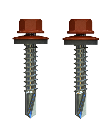 Саморез кровельный изготовлен из стали, покрыт белым цинком с дополнительной окраской в цвет RAL 3005 Красное вино. Применяется для крепления кровельных материалов, металлочерепицы или мягкой кровли и прочих к металлическому основанию. Кровельный саморез с частым шагом резьбы и увеличенной сверловой частью, диаметром 5.5 и 6.3 для монтажа в металл. Головка у саморезов под шестигранную биту, так же имеется шайба плоская с резиновой прокладкой EPDM для повышения герметизации.