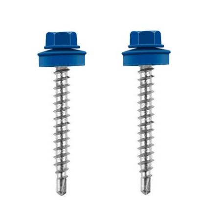 Саморез кровельный изготовлен из стали, покрыт белым цинком с дополнительной окраской в цвет RAL 5005 Синий. Применяется для крепления кровельных материалов, металлочерепицы или мягкой кровли и прочих к металлическому основанию. Кровельный саморез с частым шагом резьбы и увеличенной сверловой частью, диаметром 5.5 и 6.3 для монтажа в металл. Головка у саморезов под шестигранную биту, так же имеется шайба плоская с резиновой прокладкой EPDM для повышения герметизации.