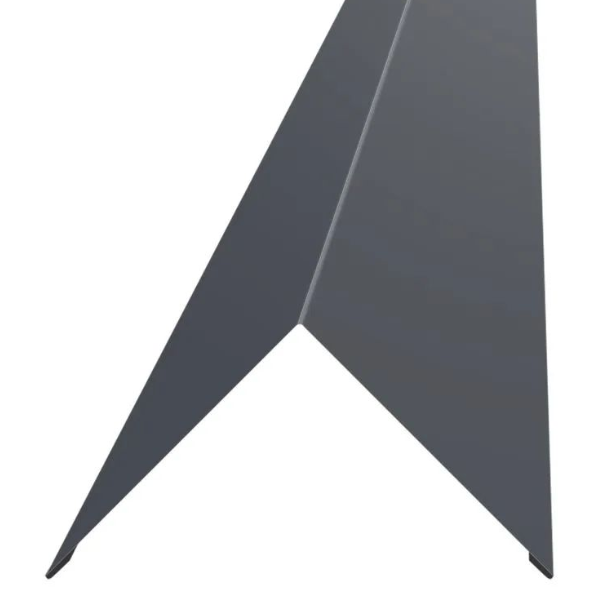 Конек с подгибом 150мм*2м RAL 7024 Серый графит применяется для закрытия профилированных листов в местах соединения скатов и наружных переломов. Используется для защиты от попадания влаги, пыли и грязи под кромки черепицы, профнастила и ондулина.