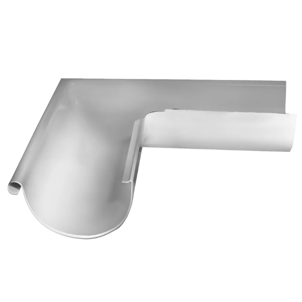 Угол желоба OPTIMA 125 внешний RAL9003 белый Grand Line применяется для изменения направления потока воды, монтируются на внешних углах кровли. Выполнен бесшовным способом (глубокой вытяжкой металла), что обеспечивает жесткость, эстетичность, герметичность и отличную гидродинамику.