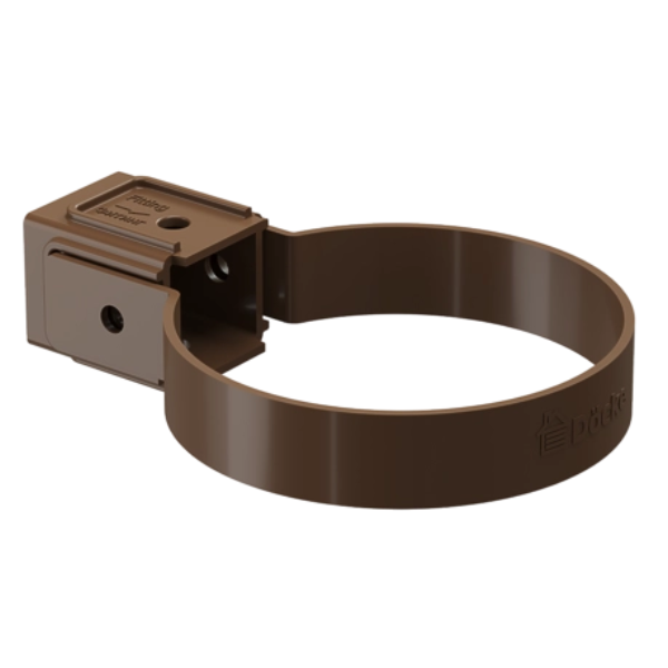 Хомут универсальный Docke STANDARD 80мм Светло-коричневый крепит трубы и сопутствующие элементы к фасадам зданий. Хомутом можно охватывать элементы водостока плотно или с зазором. Трубы охватываются неплотно, чтобы избежать деформации при изменении погоды. Трубы должны иметь возможность свободно ходить при линейном расширении внутри хомутов и смежных элементов.
