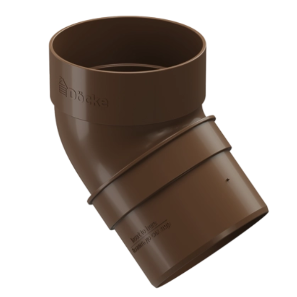 Колено Docke STANDARD 80мм 45° Светло-коричневый предназначен для формирования фигурной части водостока для перехода от водосборной системы к водосливной. Труба необходимого размера объединяет два колена и формирует нужный вынос от карниза до фасада дома для дальнейшего монтажа водосточной трубы. Нижнее колено крепится к фасаду хомутом. Между собой элементы собираются без какого-либо крепежа.