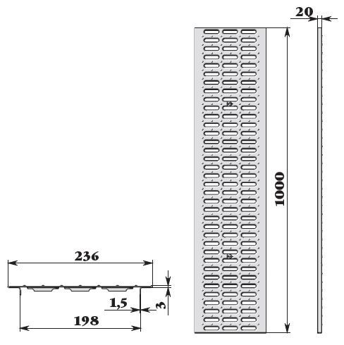 длина 1000мм; ширина 236мм; высота 20мм