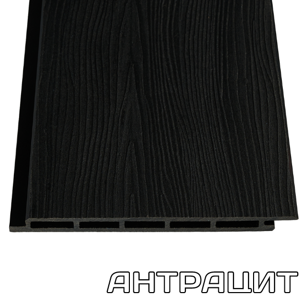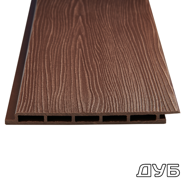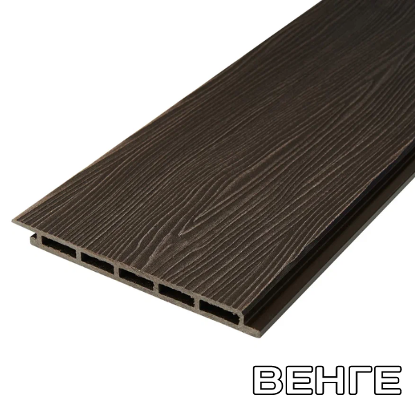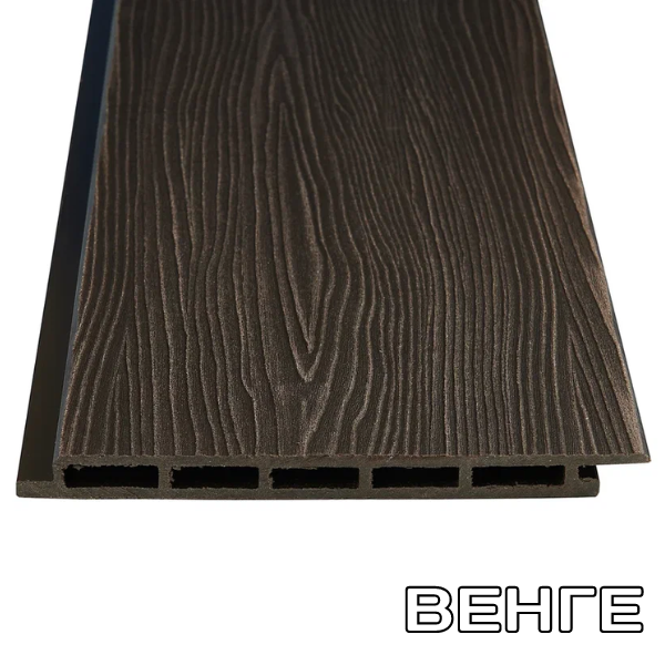 Фасадная панель ДПК 14*180*3000мм. Венге, Дуб, Серая, Шоколад, Антрацит с 3D тиснением обладает прочностью при ударных и статических нагрузках. Не выцветает и не разрушается под воздействием УФ лучей, не выделяет и не впитывает влагу, поэтому он в отличие от дерева не дает усушки и усадки. Такой сайдинг не трескается и не деформируется при переменах погодных циклов, отличается прекрасной тепло и звукоизоляцией. Сайдинг из ДПК отличается легкостью конструкции и в отличие от металлического сайдинга не требует какого-либо учета при проектировании здания. Облицовку сайдингом из ДПК можно проводить как при строительстве дома, так и для обновления фасада ранее построенного здания.