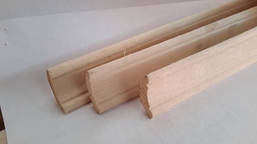Плинтуса деревянные делятся на два типа: напольный и потолочный. Применяются при внутренних отделочных работах для закрывания и облагораживания стыков и зазоров между полом и стенами.
