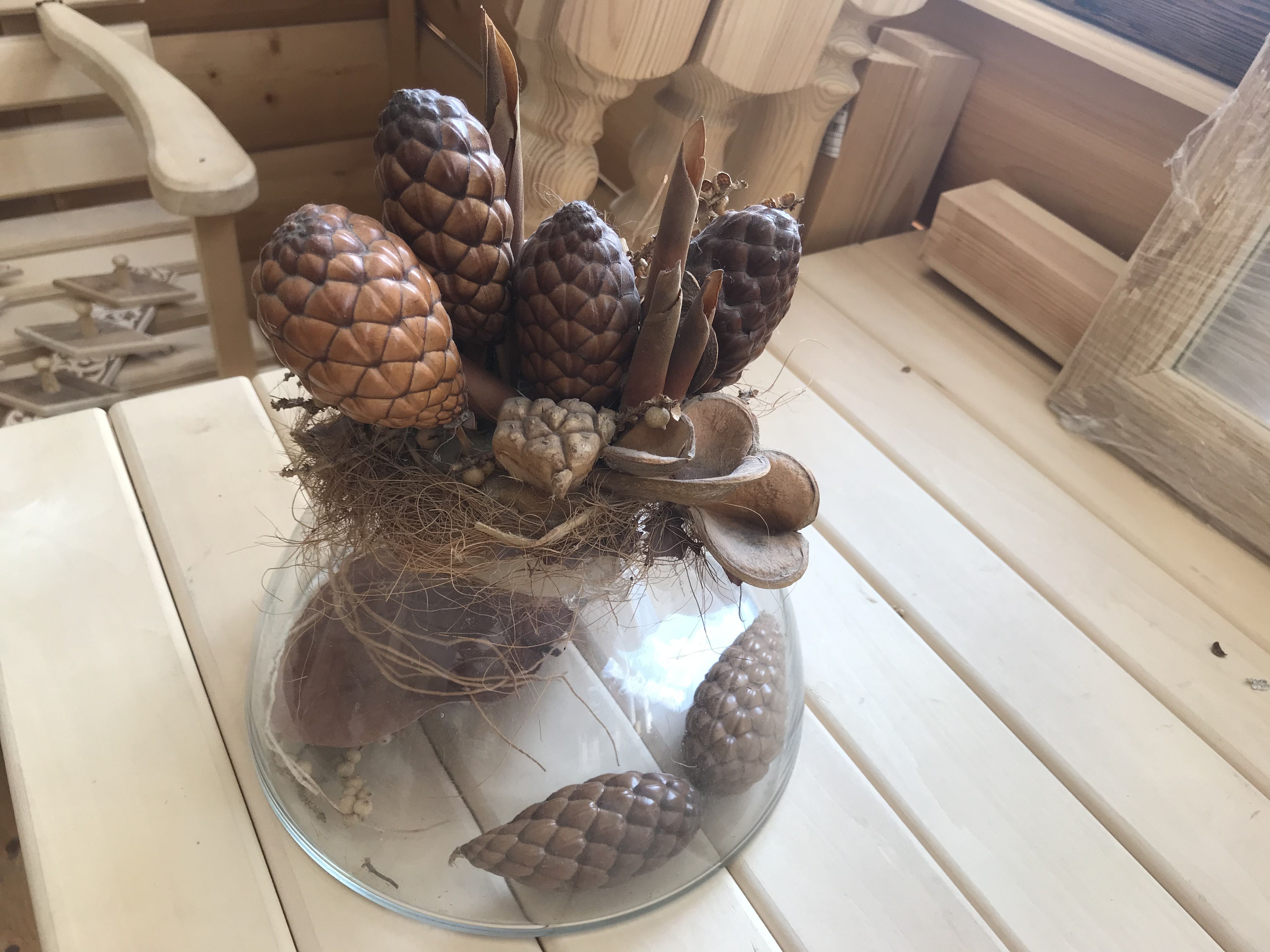 Закрытая настольная ваза с природным материалом