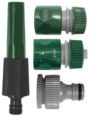 Набор поливочный 4 шт. (насадка для полива, соединитель, соединитель с автостопом, адаптер внешний). Материал: ABS пластик.*