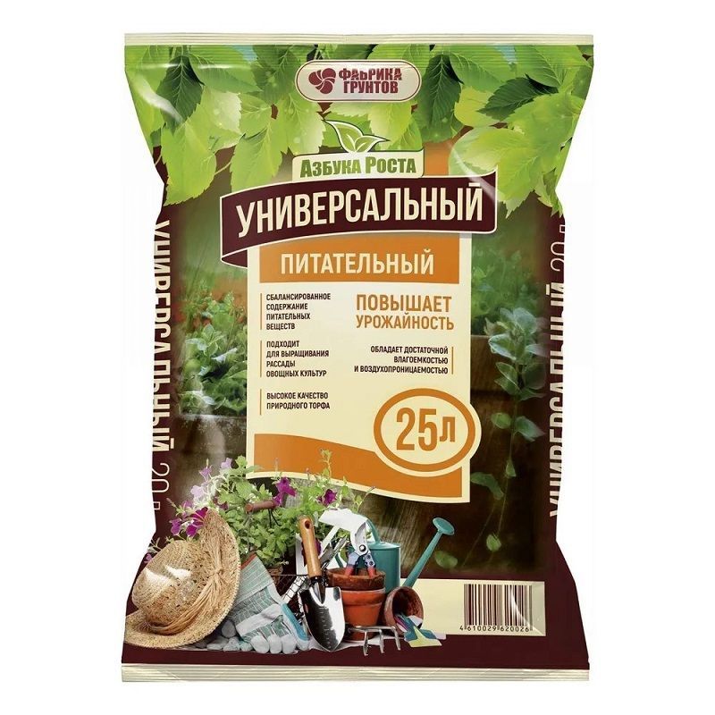 Почвогрунт Универсальный Азбука Роста — подходит для большинства видов растений, способствуя увеличению урожайности и качества овощных и плодовых культур. Имеет высокое содержание природного торфа и сбалансированное количество питательных веществ, обогащая почву, что позволяет получить не только крепкие и красивые, но и полезные овощи. Обладает достаточной влагоемкостью и воздухопроницаемостью.
