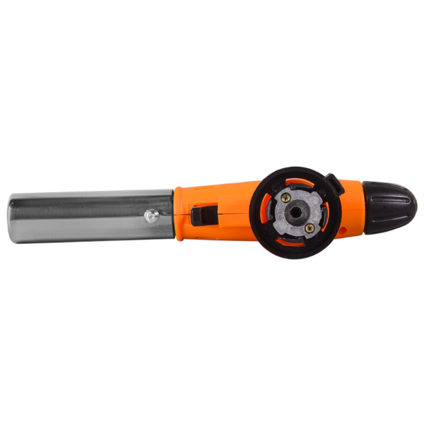 Ручной поджиг. Для розжига костра, разогрева трубопроводов, нагрева предметов и различных ремонтных работ. Используется с резьбовым баллоном. Регулировка пламени и подачи воздуха, температура 1300 °C. Сопло D=20 мм. Металлический корпус. Материал: корпус из цинкового сплава, алюминиевый сплав, медь. Упаковка: блистер.