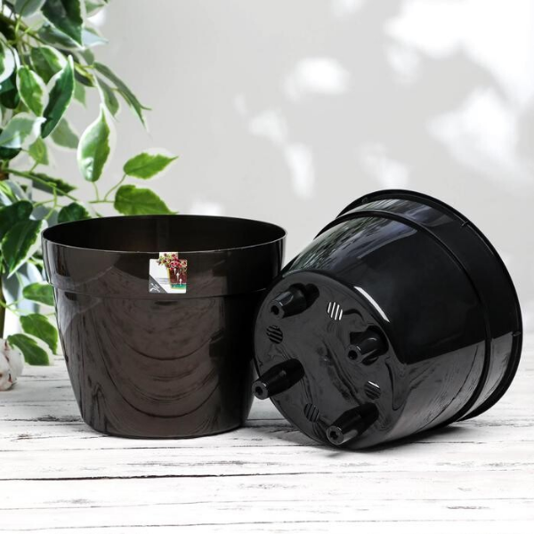 Кашпо пластмассовое "АСТИ" 6 л черное золото/черный Santino