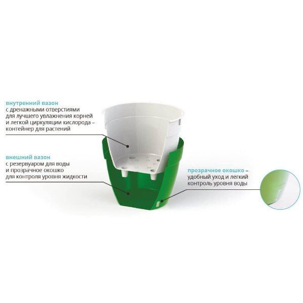 Кашпо пластмассовое "АСТИ" 6 л. черное золото/черный Santino изготовлено из высокопрочного пластика, создан для комфортного роста декоративных цветов и разнообразных зеленых растений. Современная система автополива с управлением уровня жидкости включает целый ряд достоинств: сокращает время во время ухода за цветами, вода не вытекает во время поливов, и нет нужды в установке поддона, корни не задыхаются в воде. Контроль уровня воды осуществляется через прозрачное окошко в корпусе кашпо.