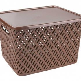 Корзина для хранения пластм. "Плетенка" 350х290х225мм с Крышкой,Темно-Коричн (Октябрьск)