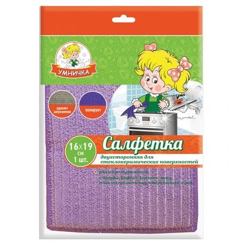 Салфетка д/уборки д/стеклокерам. поверхностей 2-х сторонняя "Умничка"