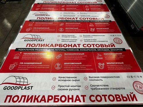 Поликарбонат сотовый листовой GOODPLAST лёгкий, пластичный, долговечный. Предназначен для бытовых нужд в строительстве, ремонте, отделке и производстве. Применяется в светопропускаемых конструкциях, требующих незначительную нагрузку. Может использоваться вместо стекол и витражей в окнах подъездов и нежилых помещений. Используется в ограждающих элементах (ширмы, душевые кабины, стены павильонов, заборы), подходит для рекламных и выставочных стоек, изготовления дизайнерских арт объектов.