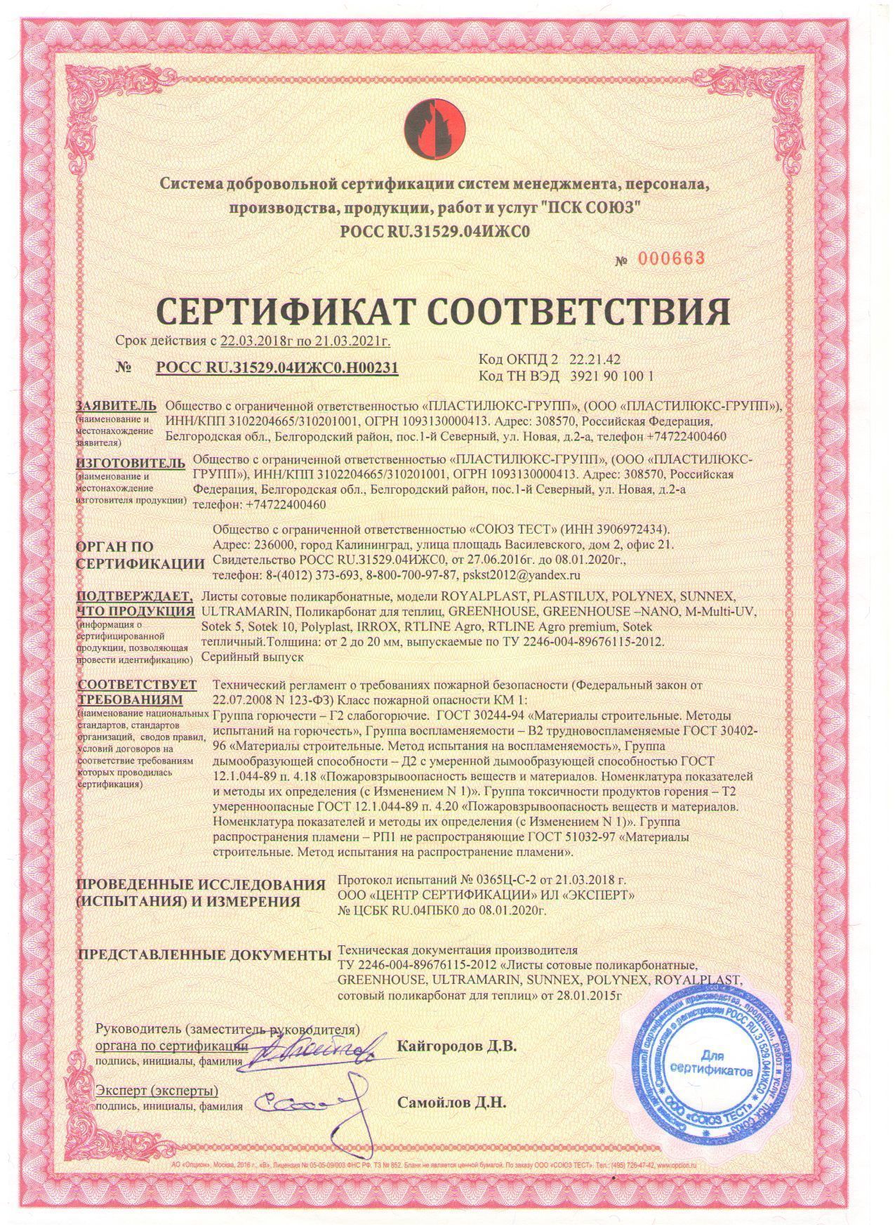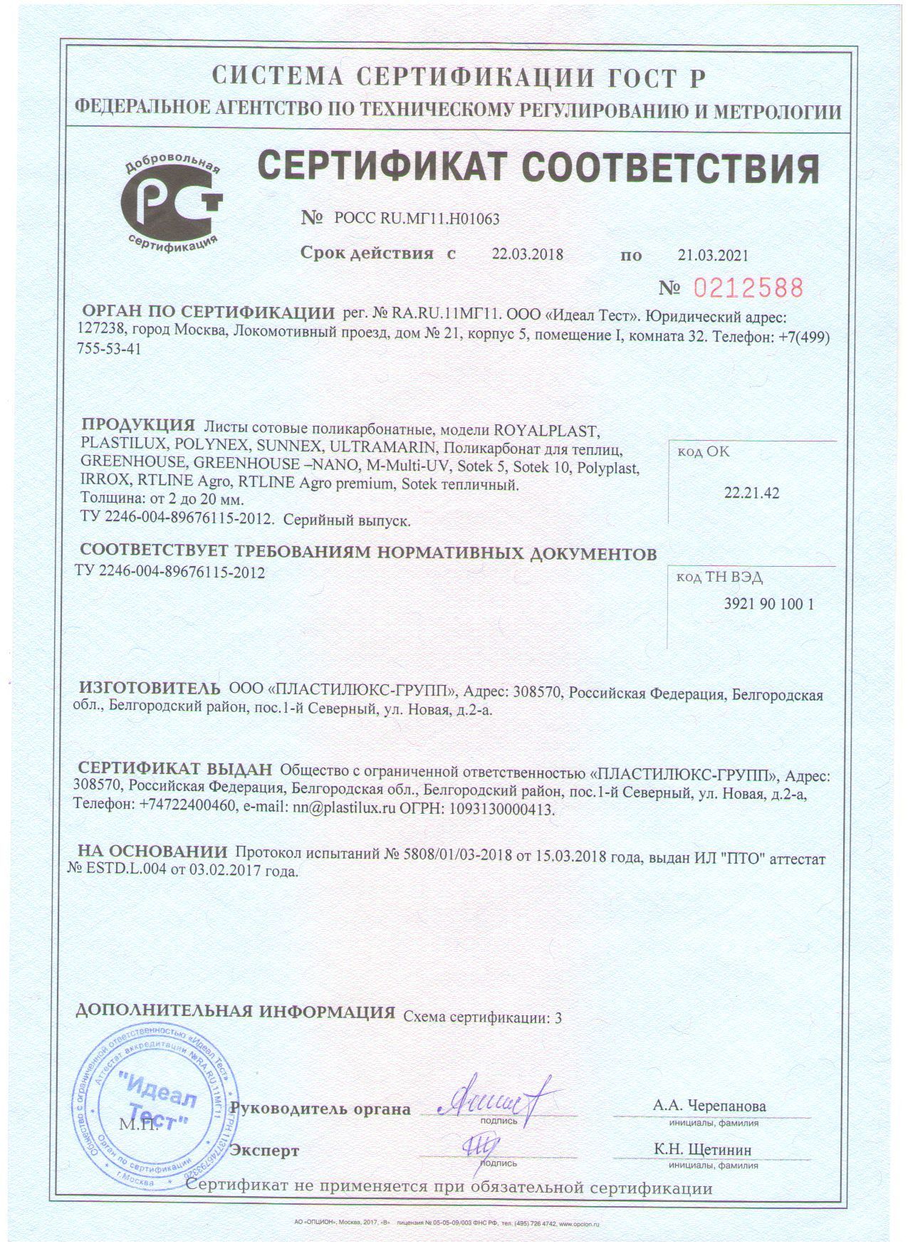 Поликарбонат GREENHOUSE гидрофильности – содержит добавки, препятствующие образованию на поверхности поликарбоната паров конденсата, защищает от ультрафиолетового излучения, не имеет запаха, не подвержен плесени.