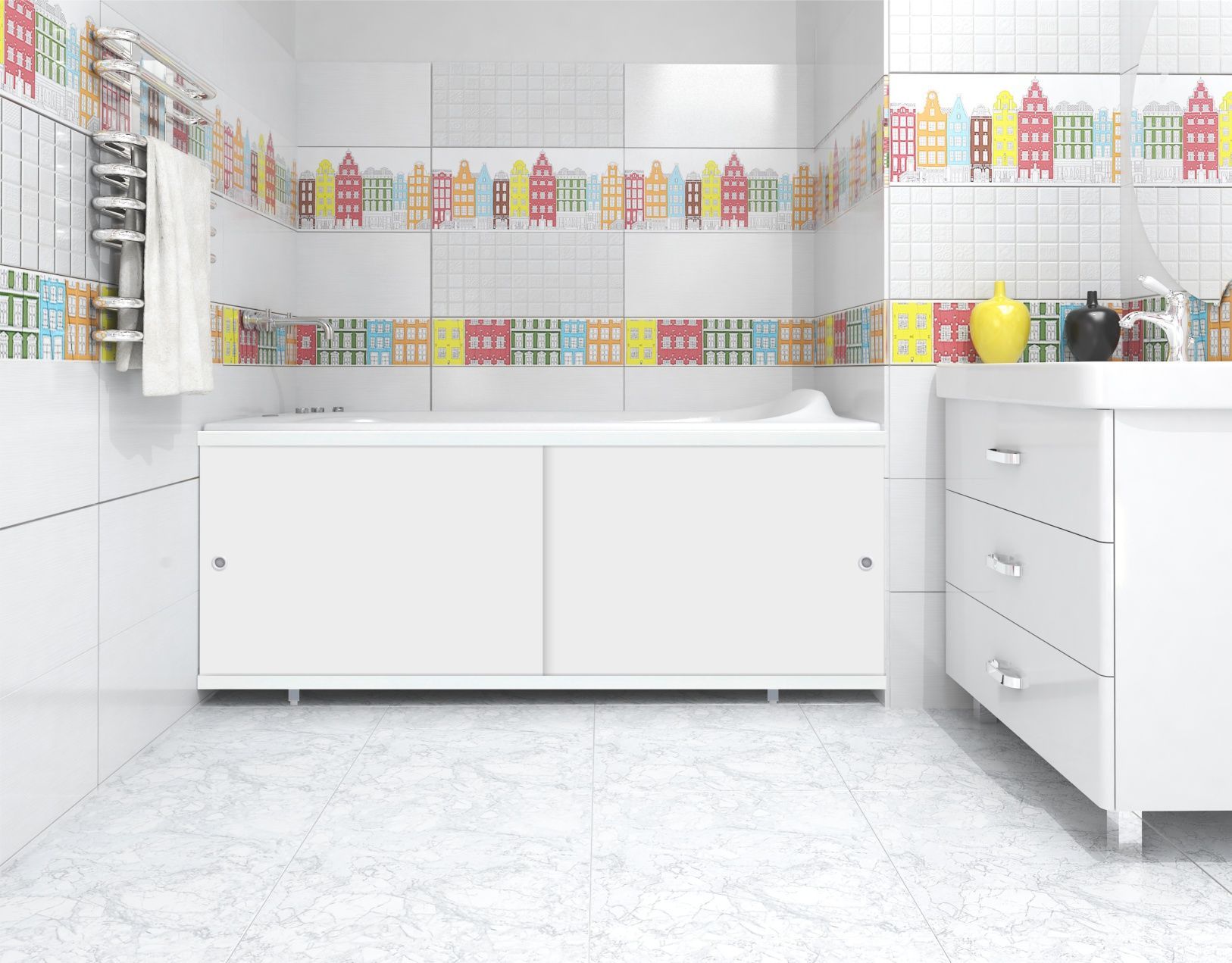 Экран двухдверный под ванну "Кварт" белый 1,5 м. выполняет декоративную функцию, скрывая коммуникации под ванной, а также позволяет рационально использовать пространство, разместив за экраном все необходимое.