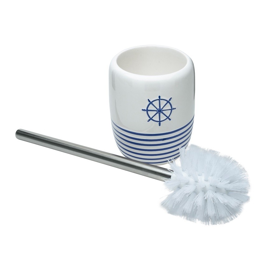 Ершик "Royal Navy" напольный керамика FOR-RN020 Fora изготовлен из керамики высокого качества, украшен горизонтальными синими полосками.