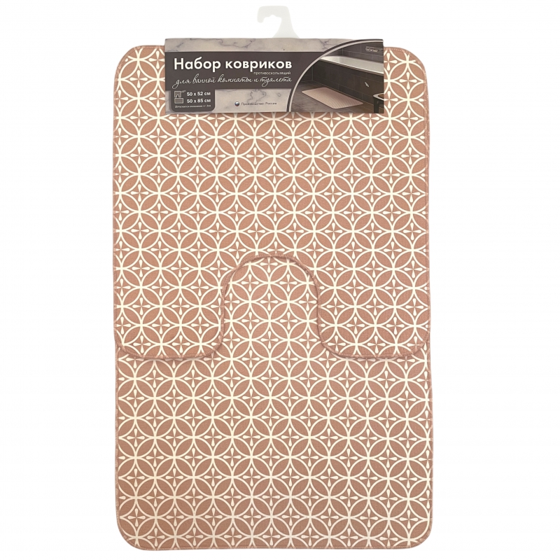 Коврик для ванной и туалета (набор 2шт) 50х85 см,50х52 см текстиль/ПВ (противоскользящий)