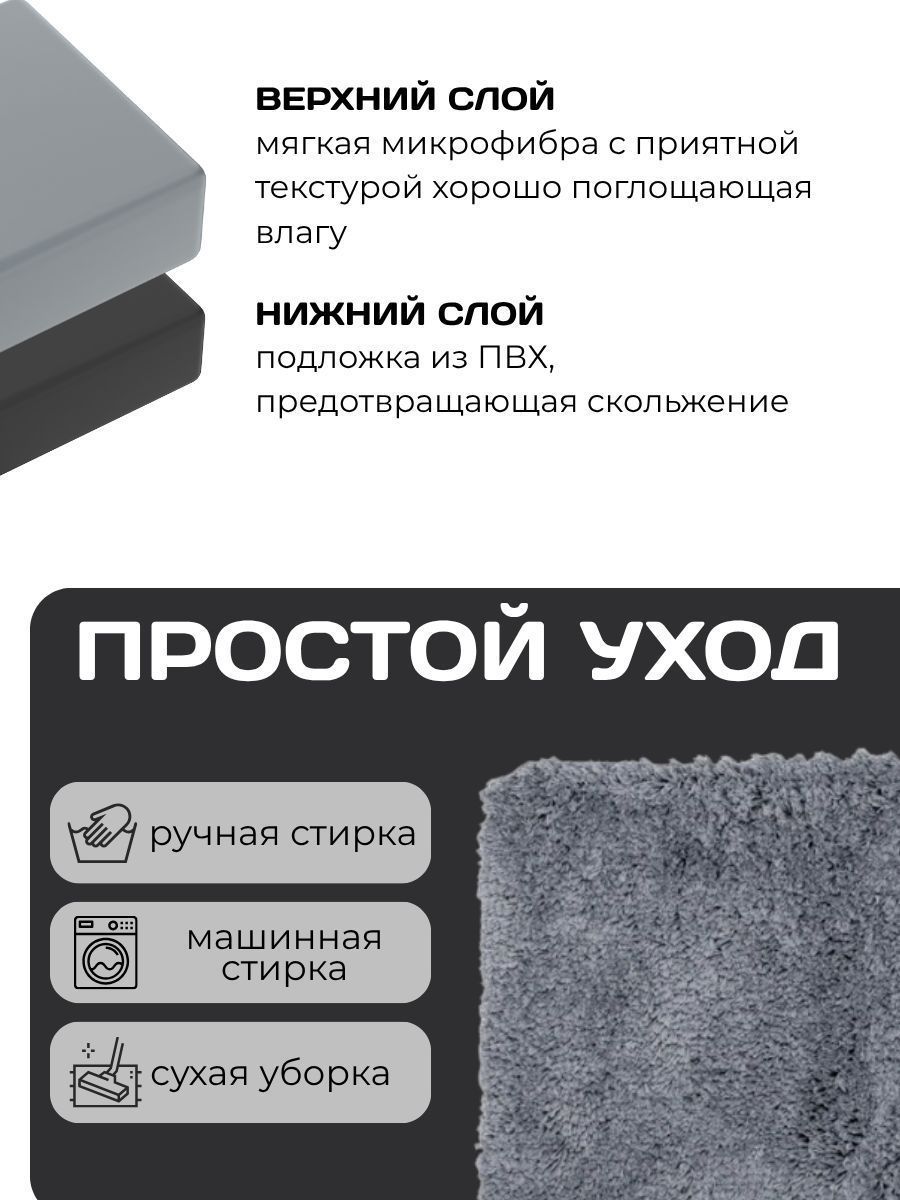 Материал: микрофибра (полиэстер 100%), противоскользящая подложка (искусственный каучук)