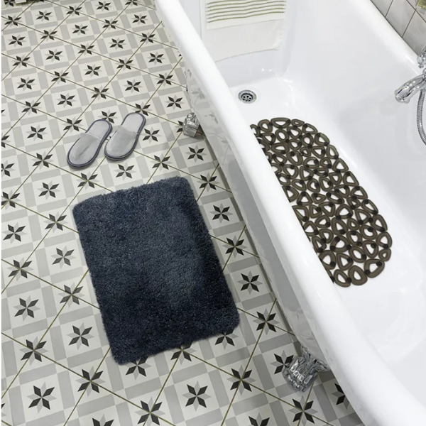 Коврик для ванной Лапша (шенилл) 40х60 серый 75394 Master House изготовлен из микрофибры. Разрешается использование в ванных комнатах с подогреваемыми полами. Отлично впитывает влагу. Имеет противоскользящее покрытие. Можно стирать.