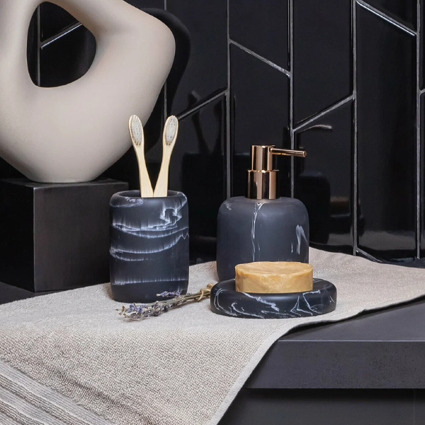 Мыльница Marble полирезин 75202 Master House обладает мягкими круглыми формами. Прочно стоит на поверхности. Аксессуар обладает ударопрочностью, не царапается, не трескается, легко моется. Добиться такого эффекта от настоящего черного мрамора не удастся. Входит в состав коллекции Marble.