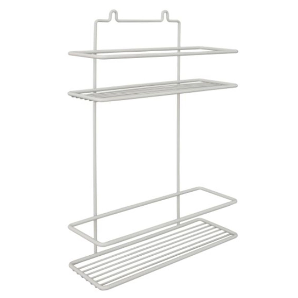 Полка прямоугольная 2 яруса (белая, высокий борт) 250*85*365 П0001290 применяется для организации пространства и экономии места в ванной комнате.
