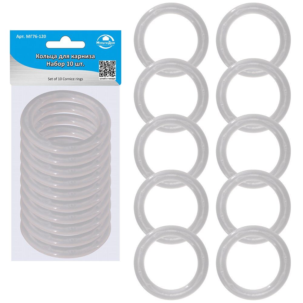 Кольца для карниза пластик МГ76-120 10шт/уп применяются для крепления штор к классическому штанговому карнизу диаметром до 4 см. Они будут надежно удерживать ваши шторы и легко скользить по гладкой поверхности карниза.