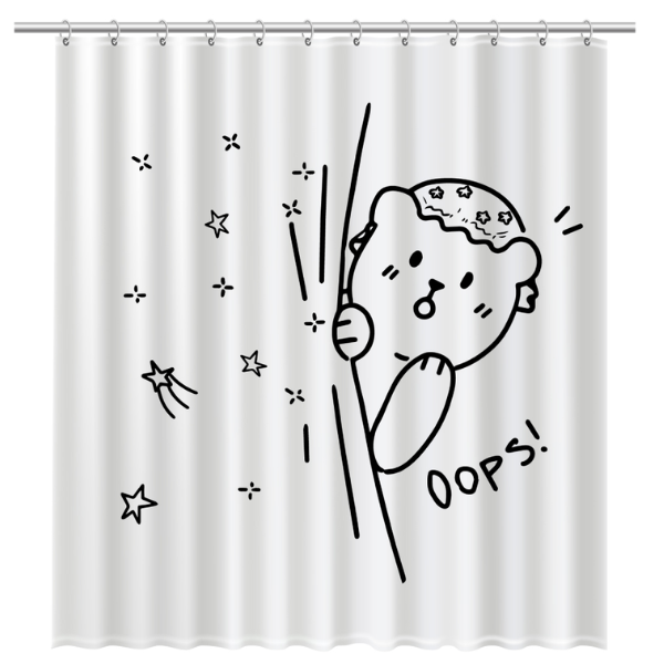 Штора для ванной комнаты FIXSEN TEDDY OOPS FX-2505 изготовлена из 100% полиэстера с водоотталкивающей пропиткой. Оснащена резиновым утяжелителем. Кольца для карниза в комплект не входят.