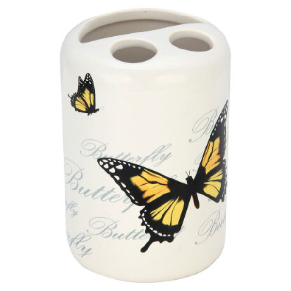 Держатель для зубных щеток Бабочки, керамика ТВН-FLY Рыжий кот изготовлен из высококачественной керамики, снабжен 2 отверстиями для зубных щеток и дополнительным отверстием для тюбика с зубной пастой.