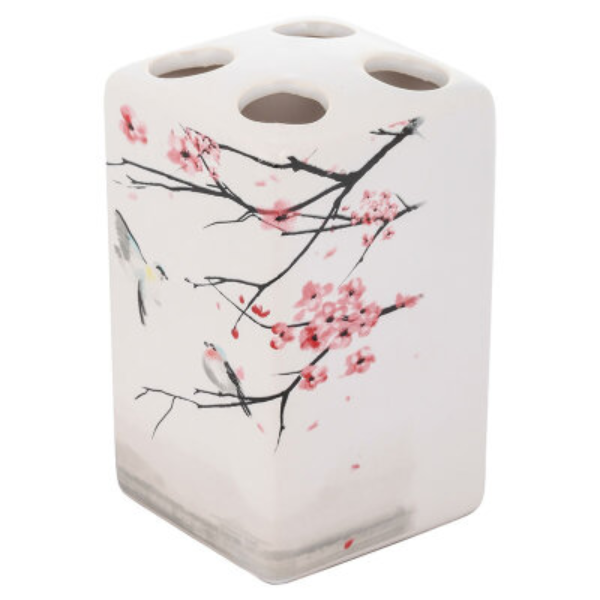Держатель для зубных щеток Сакура, керамика ТВН-S Рыжий кот изготовлен из высококачественной керамики, снабжен 4 отверстиями для зубных щеток. Материал устойчив к влаге, моющим и дезинфицирующим средствам, не впитывает запахи, прост в уходе.