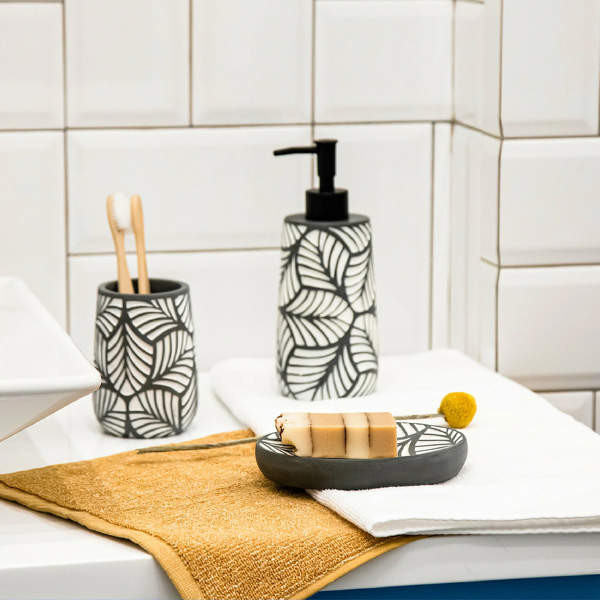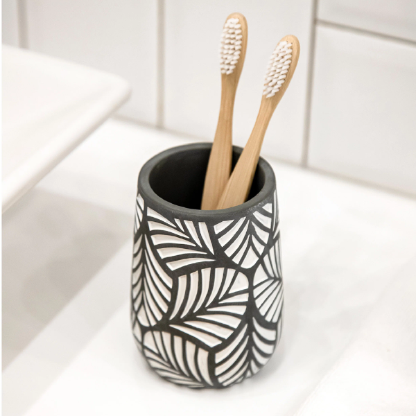 Стакан д/зубных щеток Floret цемент 75216 Master House с благородным серым цветом материала идеально подчеркивает белый принт в виде листьев. Входит в состав коллекции Floret.