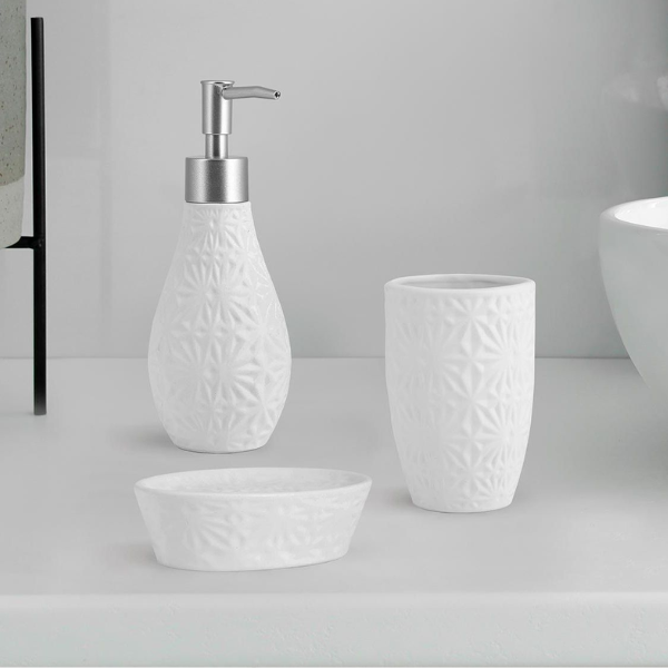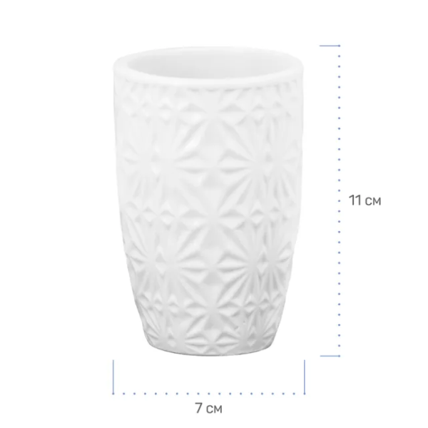 Стакан д/зубных щеток ВаннДерВайт, керамика, цвет белый 60716 Master House благодаря эффектному сочетанию четкого геометрического узора на белой керамике и матовой поверхности стакан для зубных щеток White гармонично впишется как в современный, так и в классический интерьер.