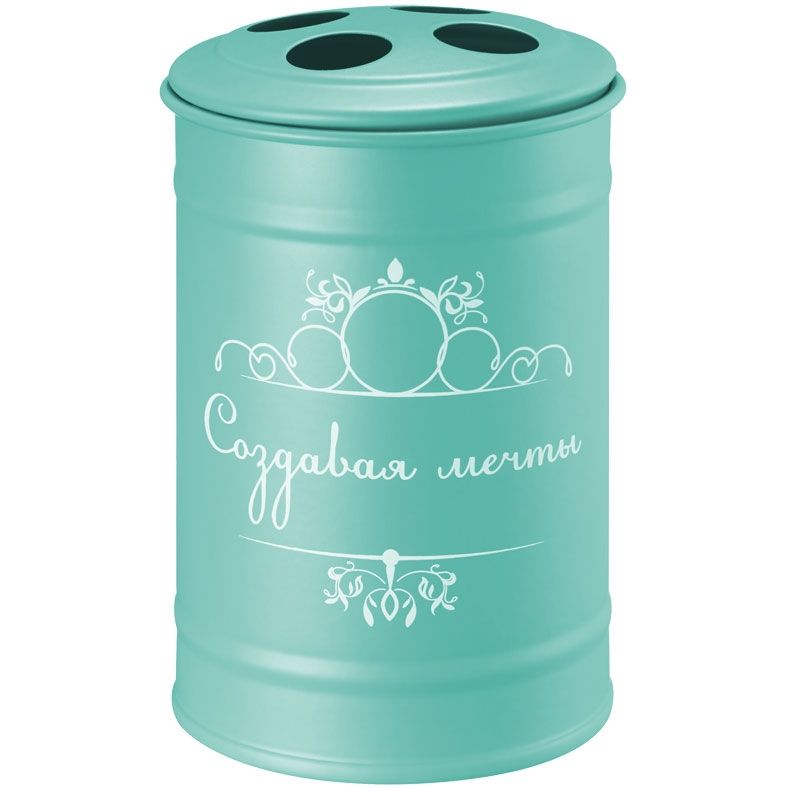 Стакан для зубных щёток "Создавая мечты" настольный тиффани FOR-DA042BL Fora изготовлен из нержавеющей стали, не подвергается воздействию высоких температур и влажности. Крышка съемная, в связи с чем он может использоваться как для хранения зубных принадлежностей, так и для других целей.