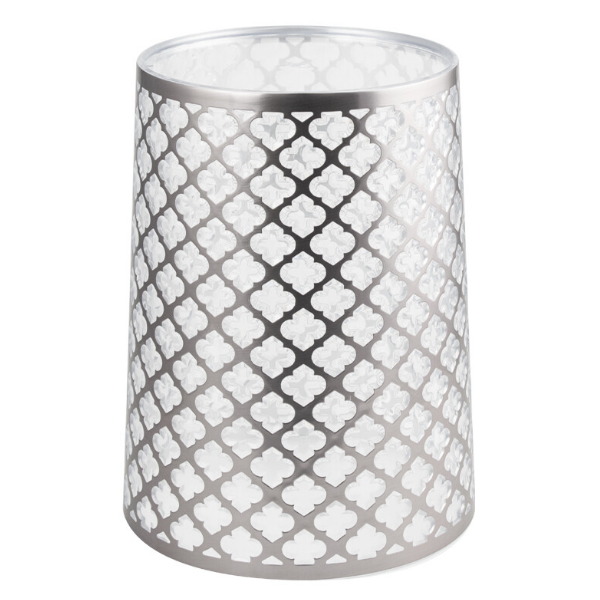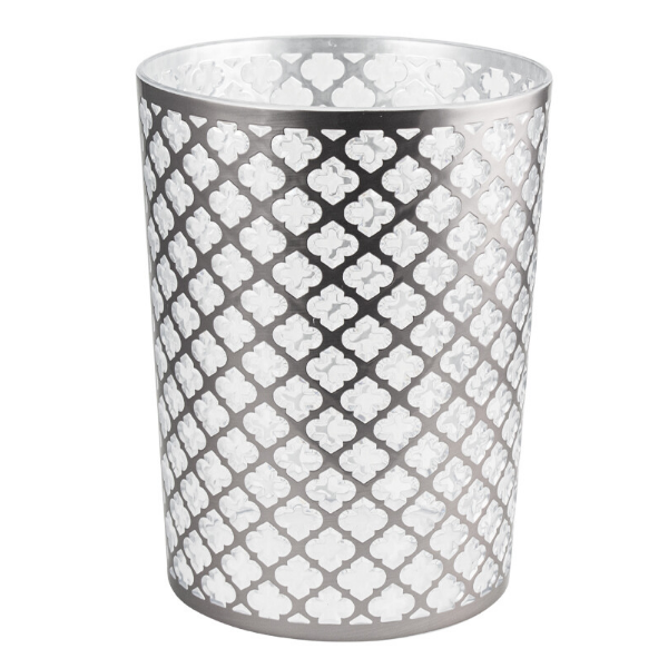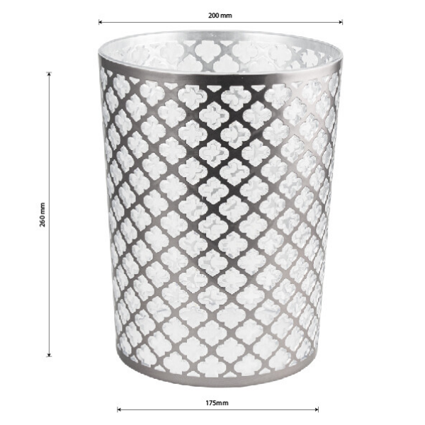 Ведро - корзина универсальное 5 л декорированное с узором. Прочная и надежная узорная корзина для бумаг и мелкого мусора идеально подходит для использования в офисах, школах, различных учреждениях. Изготовлена из высокопрочного пластика АБС и покрыта серебрянной эмалью. Корзина удобно помещается под рабочим столом.