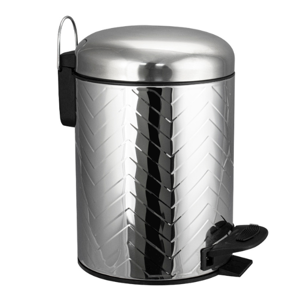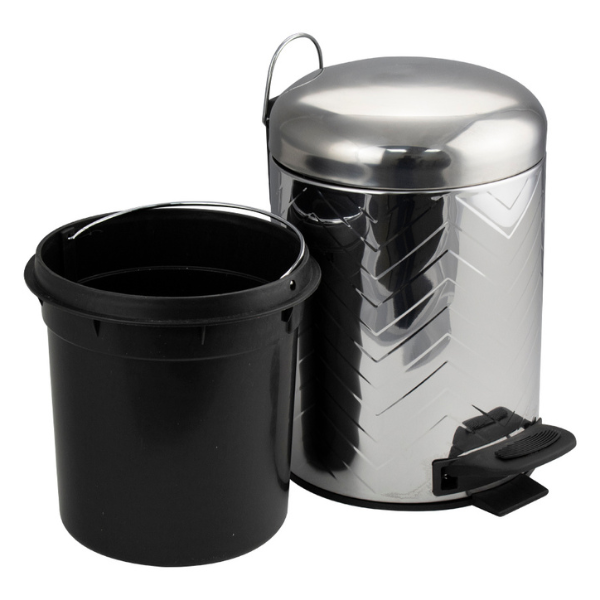 Круглое с зеркальным узором ведро 5 л. для хранения мусора с педалью и откидной крышкой Санакс подойдет для ванной комнаты, туалета или кухни и офиса. Ведро оснащено пластиковым гигиеническим контейнером с металлической ручкой для переноса и механизмом поднятия крышки, при помощи нажатия на педаль. Ведро изготовлено из устойчивой к коррозии нержавеющей стали с глянцевым покрытием. Нескользящая пластиковая основа ведра предотвращает повреждение пола.