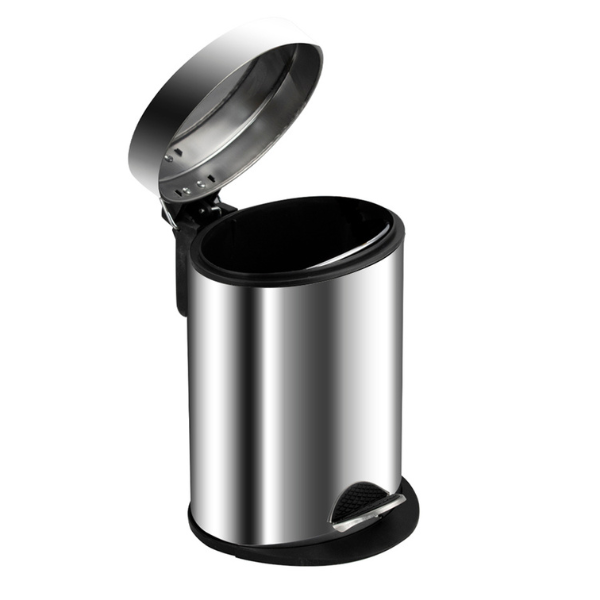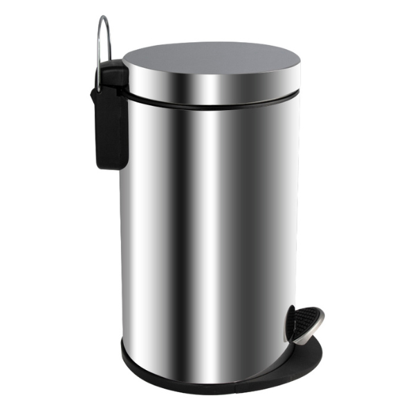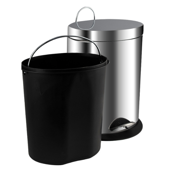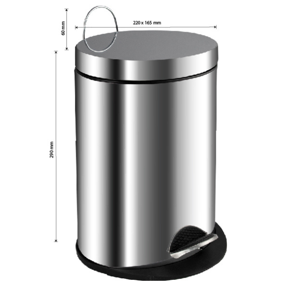 Овальное хромированное ведро 5 л. для хранения мусора с педалью и откидной крышкой Санакс подойдет для ванной комнаты, туалета или кухни и офиса. Ведро оснащено пластиковым гигиеническим контейнером с металлической ручкой для переноса и механизмом поднятия крышки, при помощи нажатия на педаль. Ведро изготовлено из устойчивой к коррозии нержавеющей стали с хромированным покрытием. Нескользящая пластиковая основа ведра предотвращает повреждение пола.