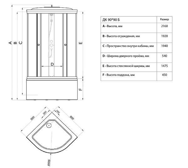 ДК "Стандарт 90*90 Б" ДН4, УЗОРЫ, полукруг, глуб. поддон (9 мест+сифон D50мм) ЭКСТРА