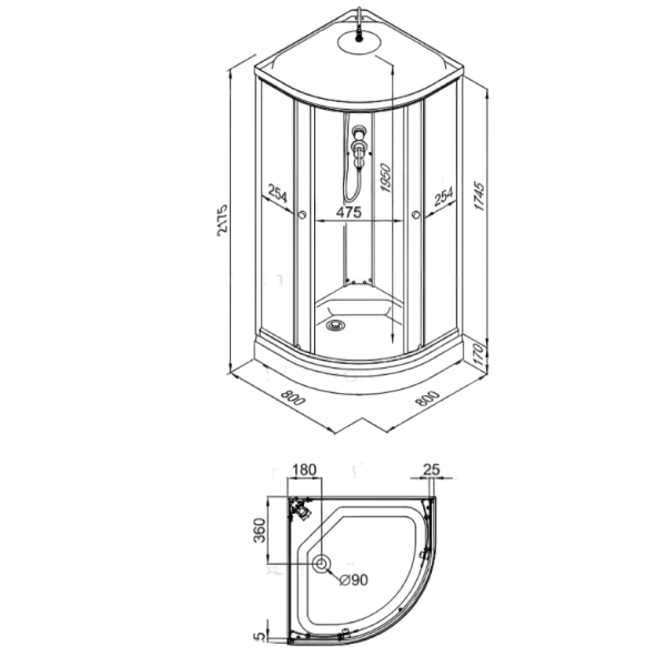 Комплектация: поддон со съемным экраном; каркас стальной; передние стекла, двери; комплект направляющих; задние стенки; центральная душевая панель; крыша; смеситель с лейкой и тропическим душем; сифон; сборочный комплект